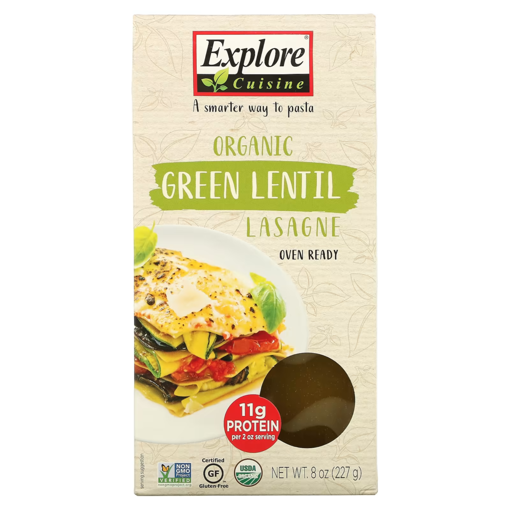 あと、これは最近iHerbで見つけて買ったのが、グルテンフリーのラザニア用のパスタです!緑のレンズ豆でできています!グルテンフリーでプロテインは2枚で11g入っています。これはまだ食べたことないんですけど、食べるのがすごく楽しみな食材の1つです!