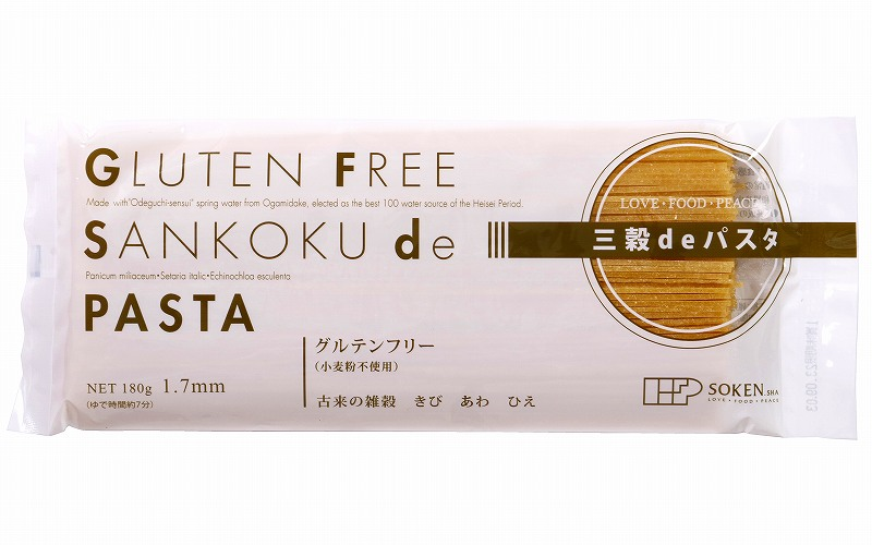 古来の雑穀3種、きび、あわ、ひえで出来たグルテンフリーのパスタです。